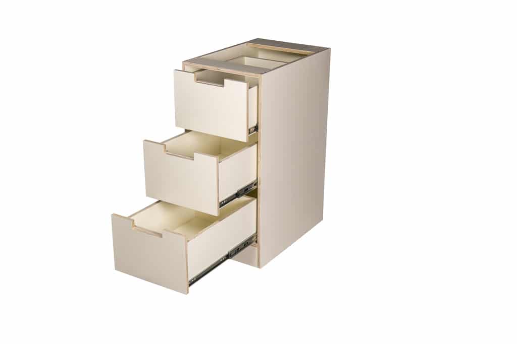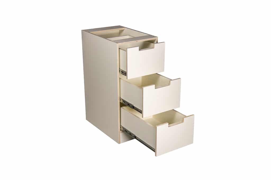 - Cabinets are made from plywood. This is a natural product that is healthier and cleaner for the environment and increases the strength and durability of the product compared to MDF products