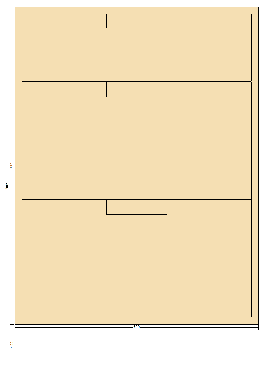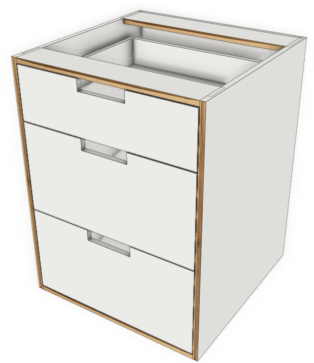 3-Drawer Inset Kitchen Base Cabinet 600mm