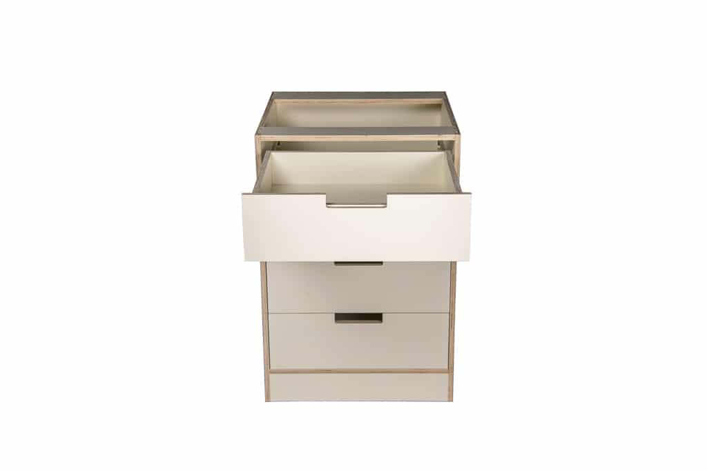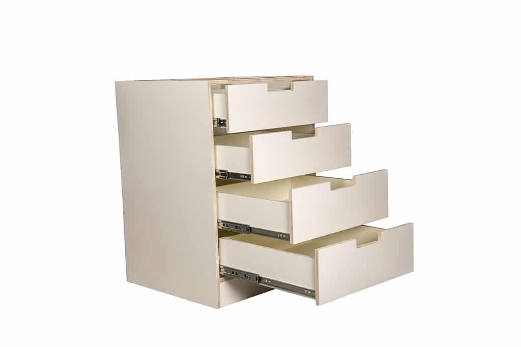- Cabinets are made from plywood. This is a natural product that is healthier and cleaner for the environment and increases the strength and durability of the product compared to MDF products